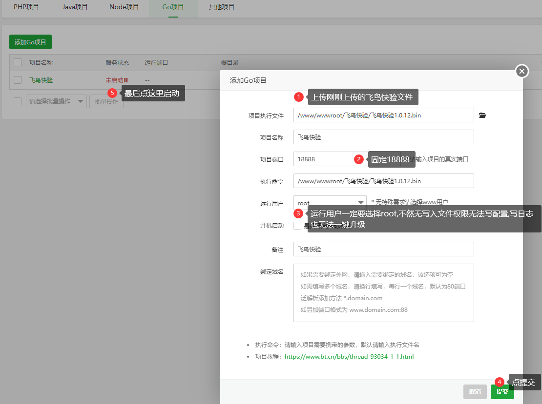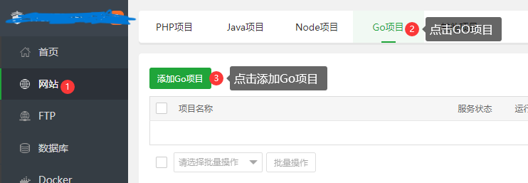 宝塔,网站=>Go项目=>添加Go项目