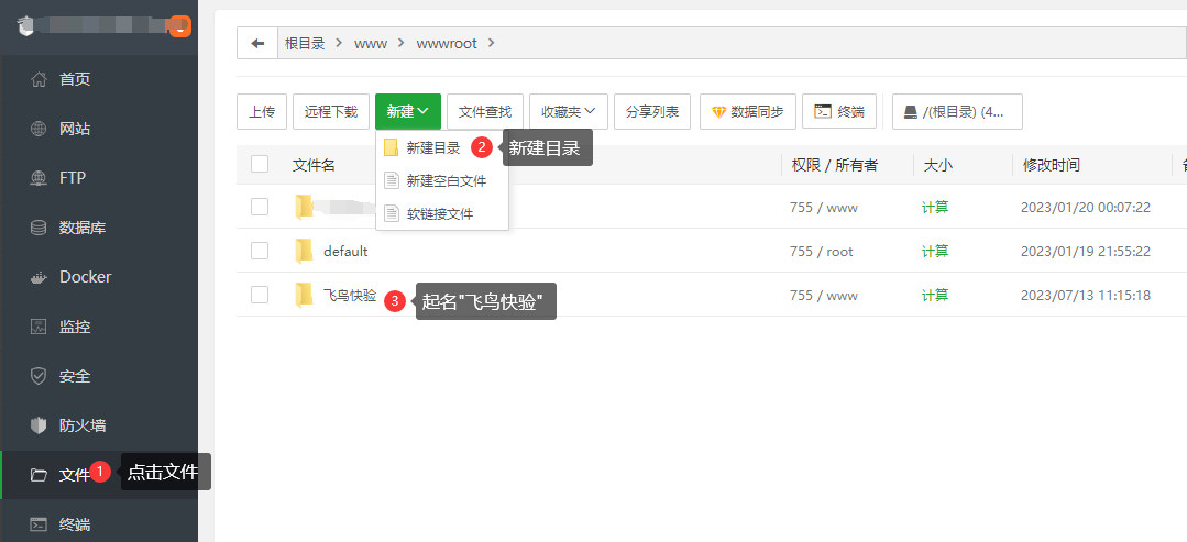 宝塔,文件=>新建=>新建目录