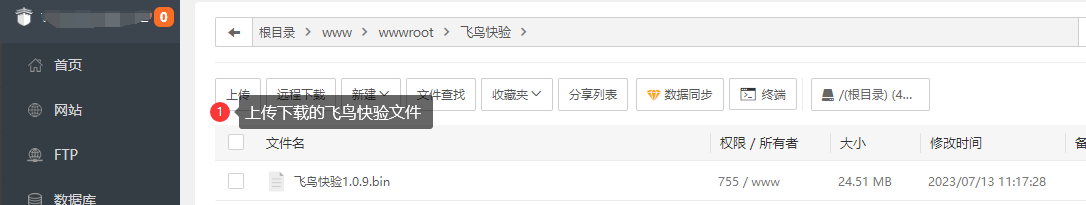 3.上传飞鸟快验.bin文件