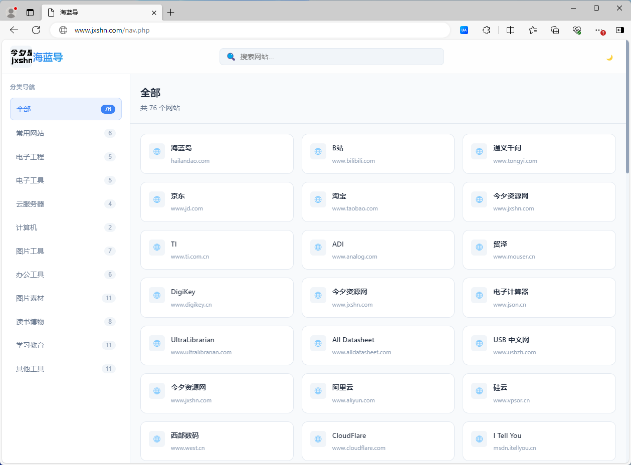 海蓝岛单文件自适应导航php源码 在线读取md文件 在线编辑管理提交导航链接