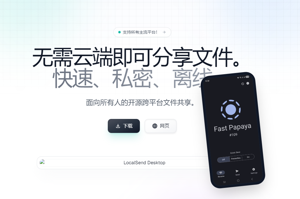 LocalSend 是一款免费开源、跨平台的局域网文件传输工具,能在