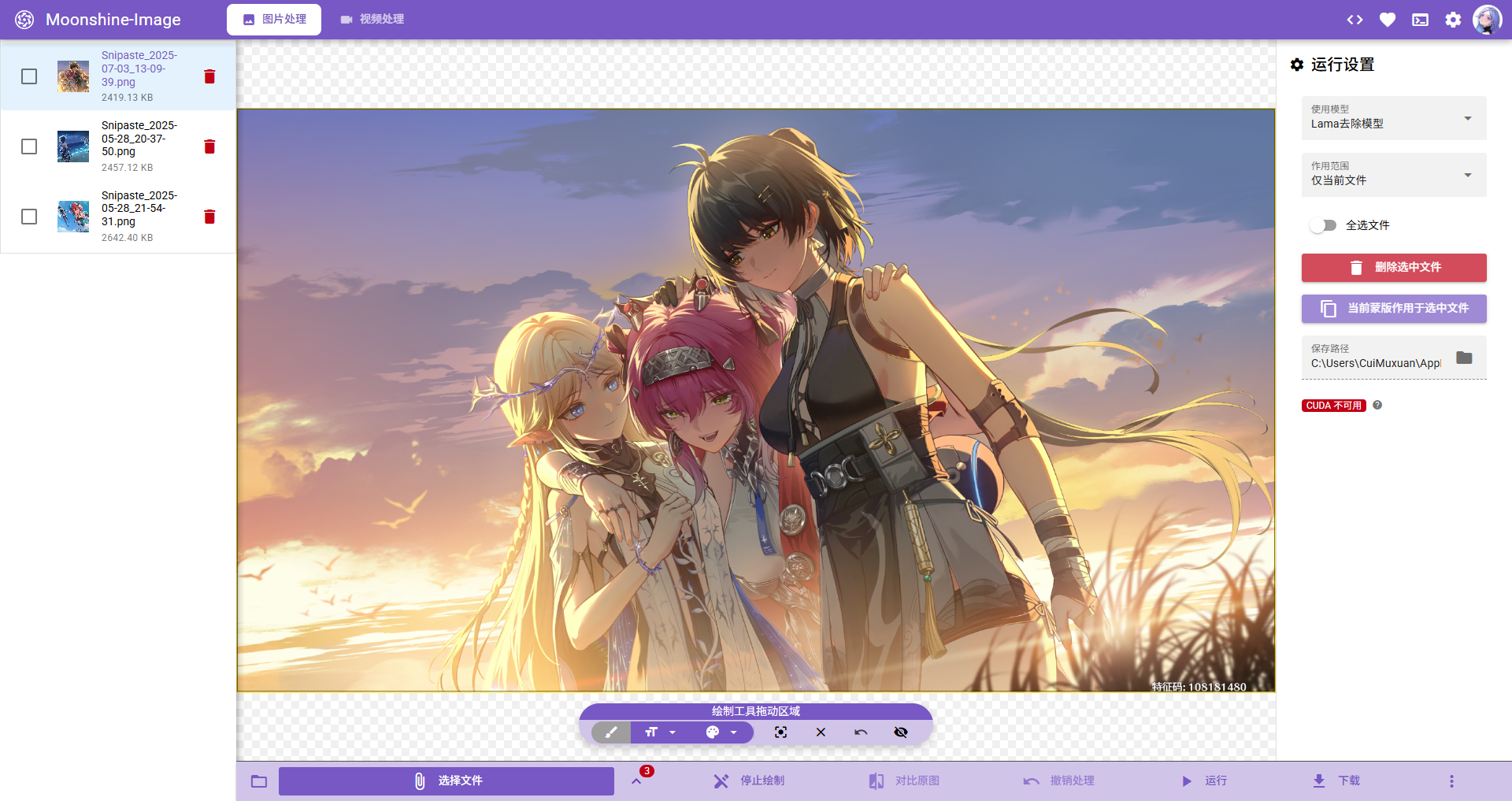 Moonshine-Image 是基于 IOPaint 二次开发的桌面端批量图像处理工具,主打灵活批量去除图片水印、文字、多余物体等内容。