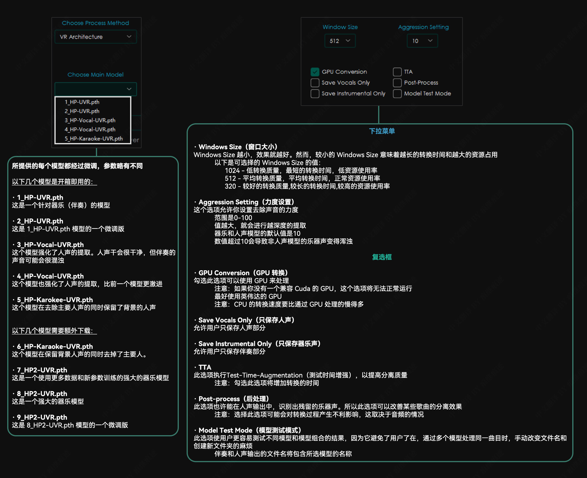 请注意:对于所有希望使用我们模型的第三方应用开发者,请尊重MIT许可,给予UVR及其开发者署名。