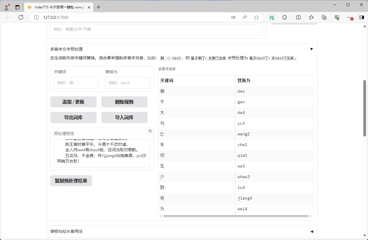 3.多音字预处理,可以将多音字准确的读音标记,如果是一篇文章存在两个不同读音,可以手动标注更准确