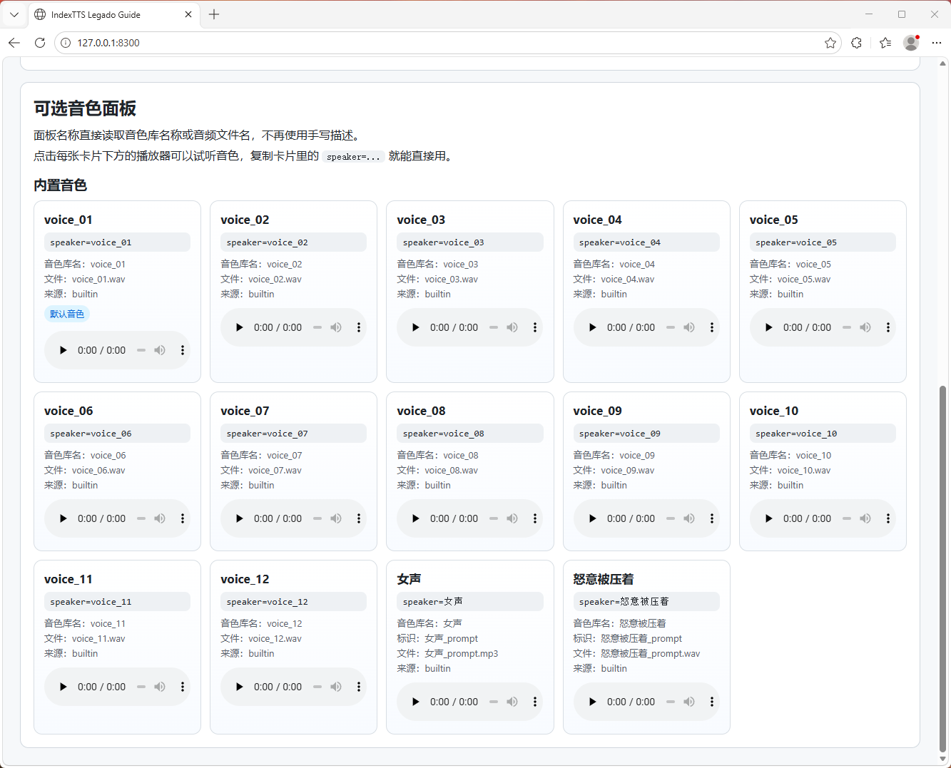 - 可直接复制 speaker=... 进行调用